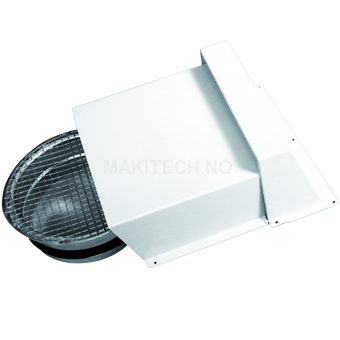 Ytterveggsrist med kappe for avkast og uteluft i beskyttede og normalt eksponerte steder. Beskytter ventilasjonskanalen mot ulike værforhold. Tilkobles til sirkulære kanaler med diameter 125 eller 160 mm.