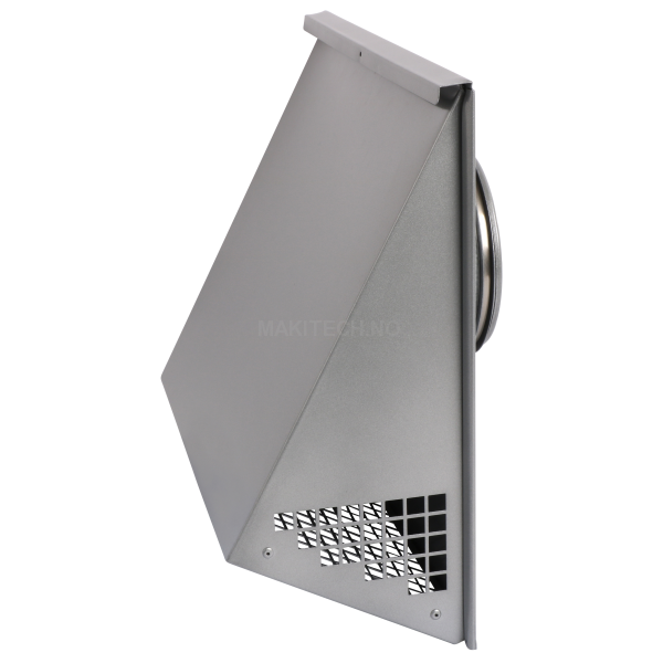 Ytterveggskappe for uteluft/avkastsluft. Produktet har korrosjonsklasse C4 og er utformet for å beskytte ventilasjonssystemet mot værforhold i normalt utsatte områder. Ytterveggskappen består av en demonterbar kappe og en tilkoblingsramme.
